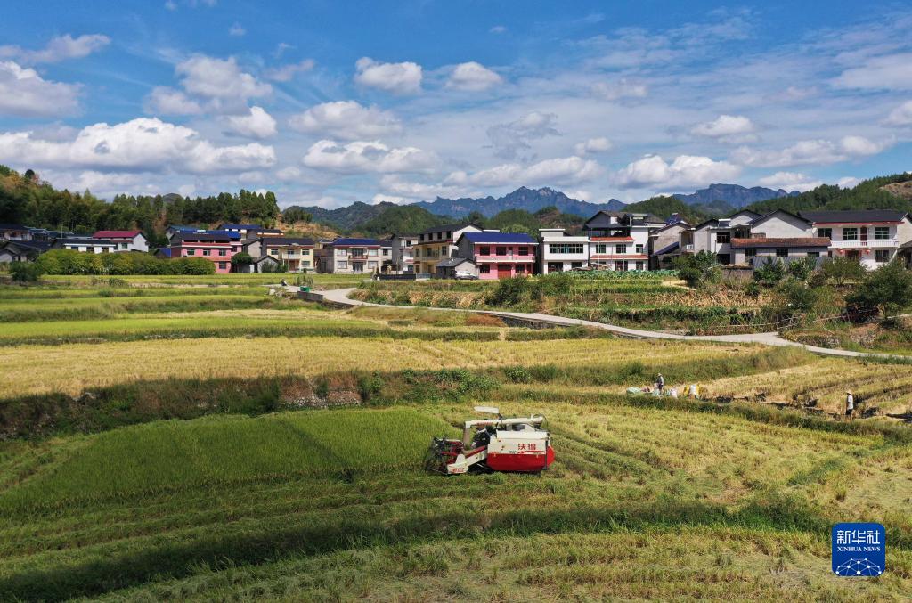 連日來,湖南張家界市永定區合作橋鄉種植的水稻進入成熟收割期,當地農民加緊收割,確保顆粒歸倉。