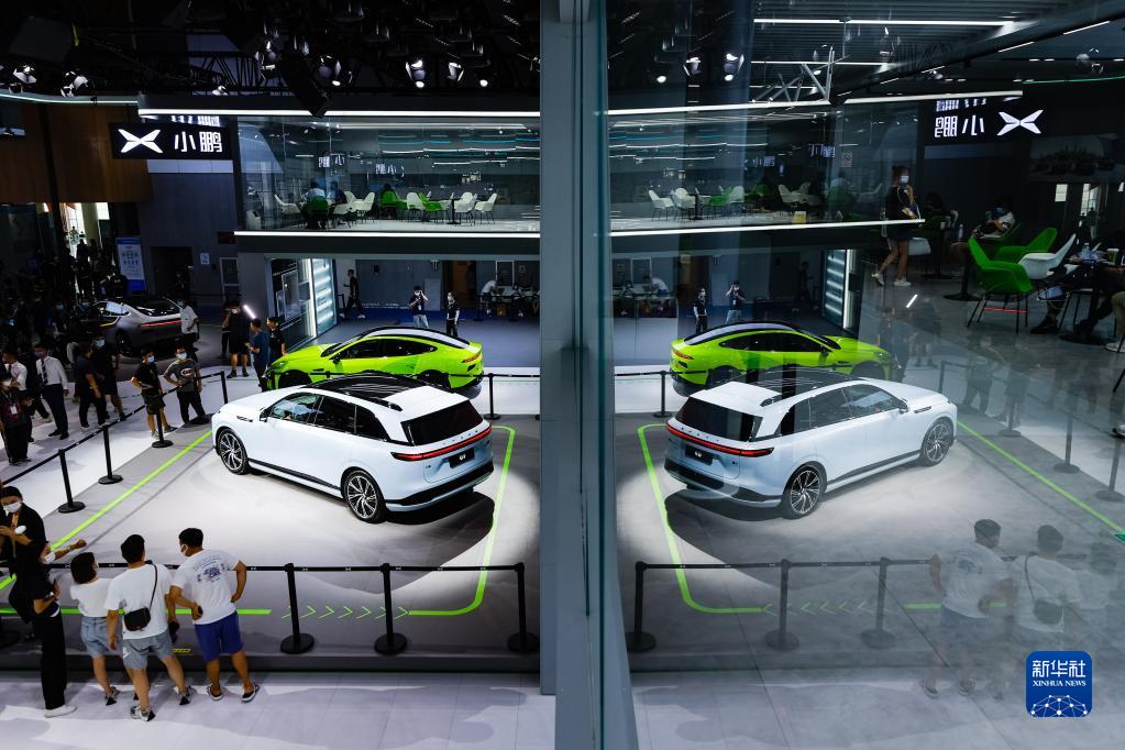8月26日,在第二十五屆成都國際汽車展覽會的小鵬汽車展臺,參觀者在觀看該品牌超快充全智能SUV G9(白色)。