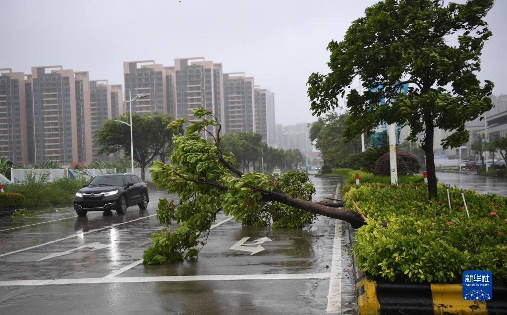 8月25日在廣東陽江市東門南路拍攝的倒伏樹木。