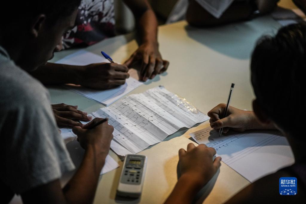 8月25日,在巴西里約熱內盧西區“上帝之城”社區,學生們在“彈奏聲音”教室中上課。新華社記者 王天聰 攝