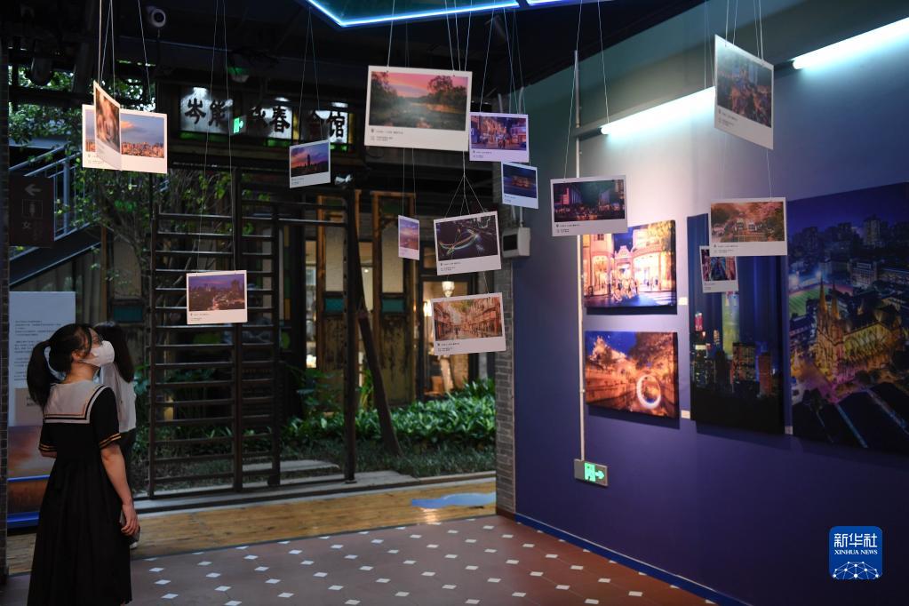 2022年7月19日,游客在廣州永慶坊參觀影展。