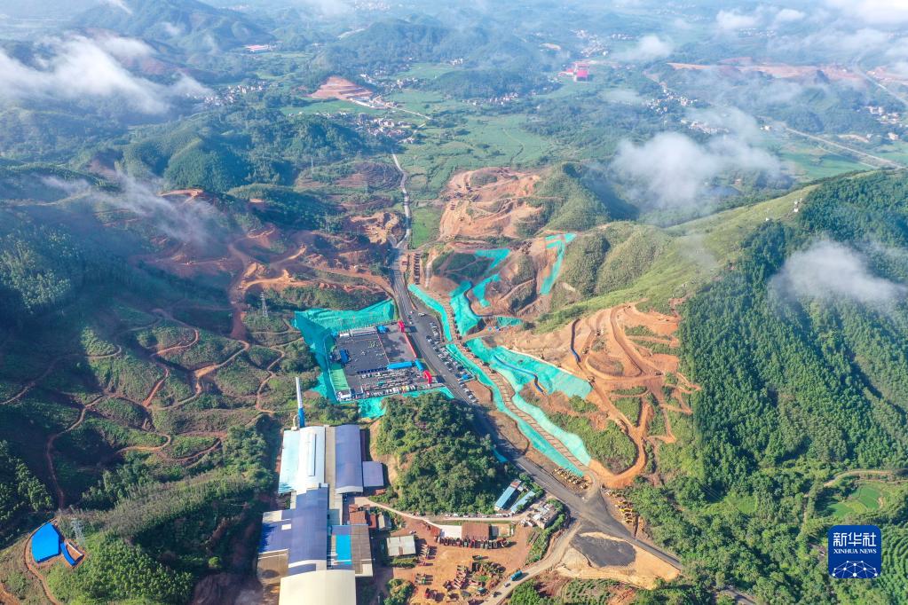 這是8月28日在廣西靈山縣拍攝的平陸運河馬道樞紐建設現場(無人機照片)。