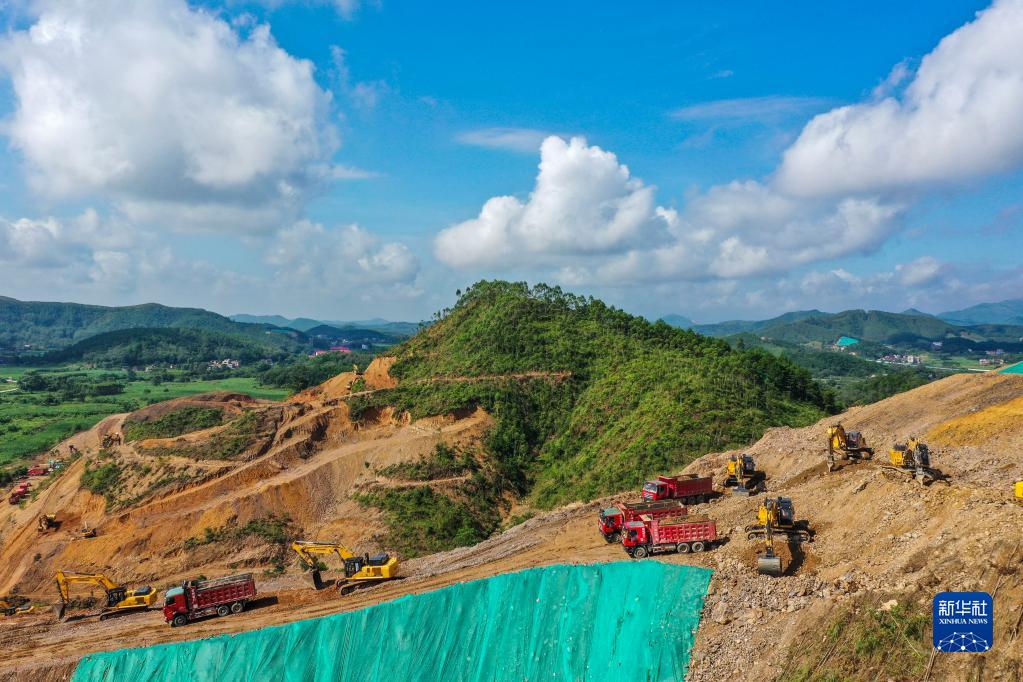 這是8月28日在廣西靈山縣拍攝的平陸運河馬道樞紐建設現場(無人機照片)。