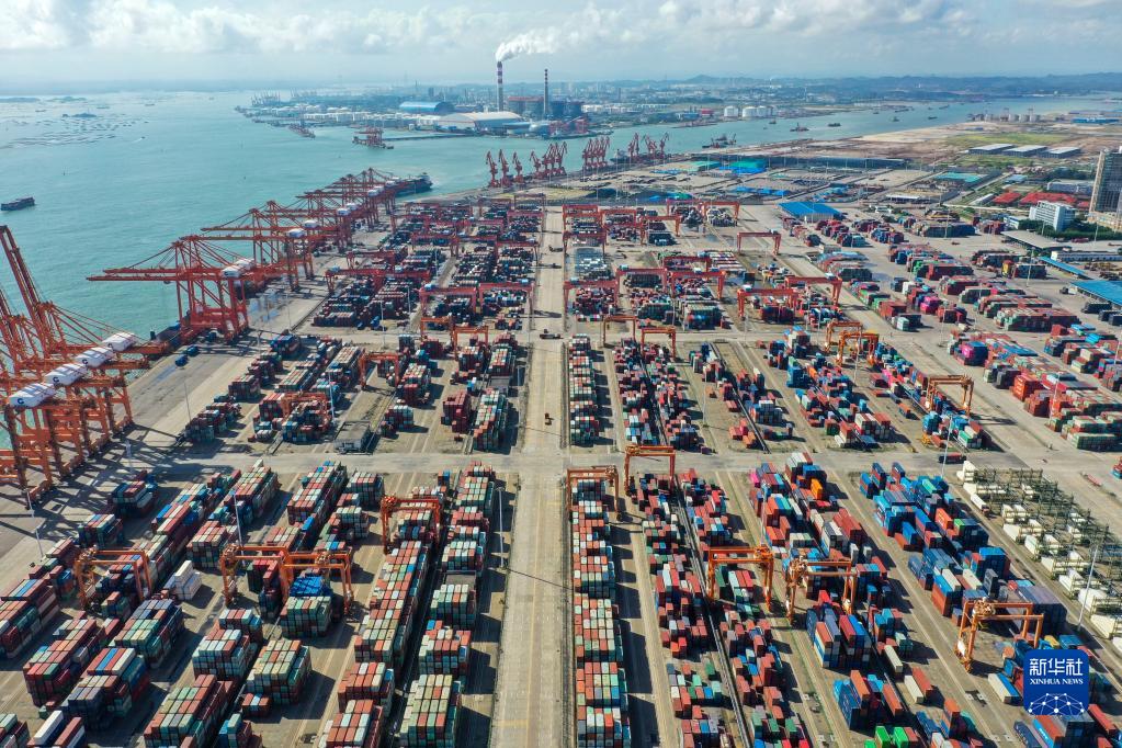 這是8月27日拍攝的位于平陸運河出??诟浇谋辈繛掣蹥J州港區大欖坪作業區(無人機照片)。