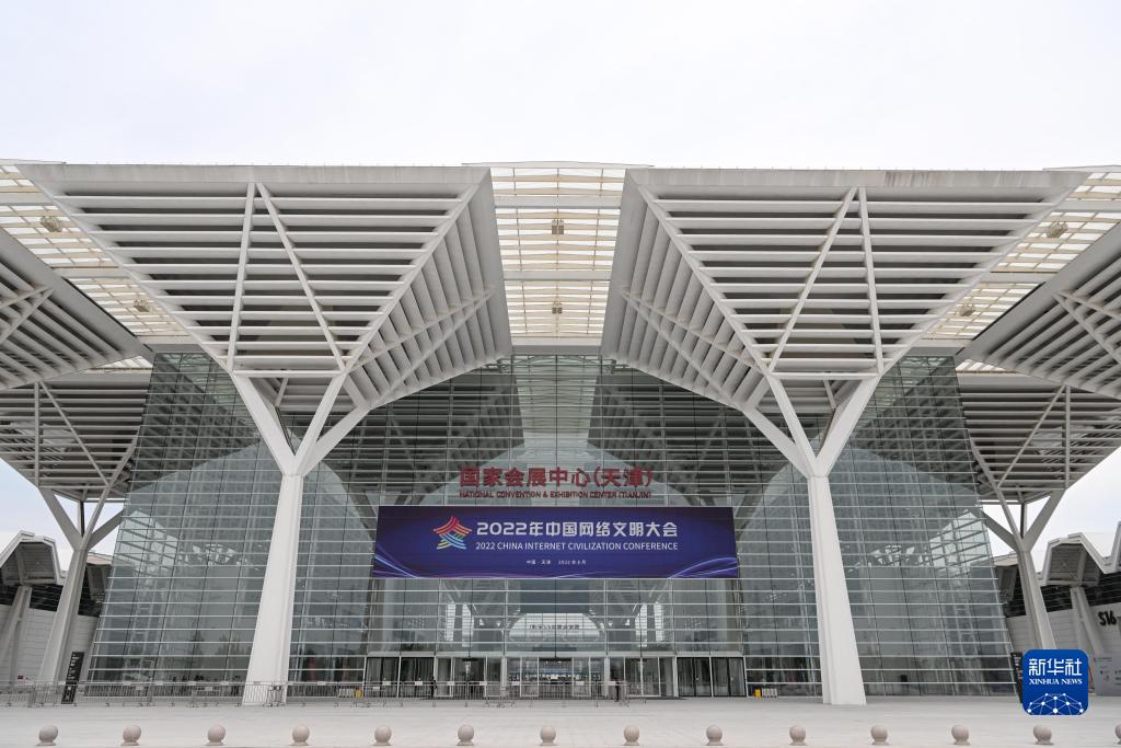 8月28日在國家會展中心(天津)拍攝的2022年中國網絡文明大會現場外景。