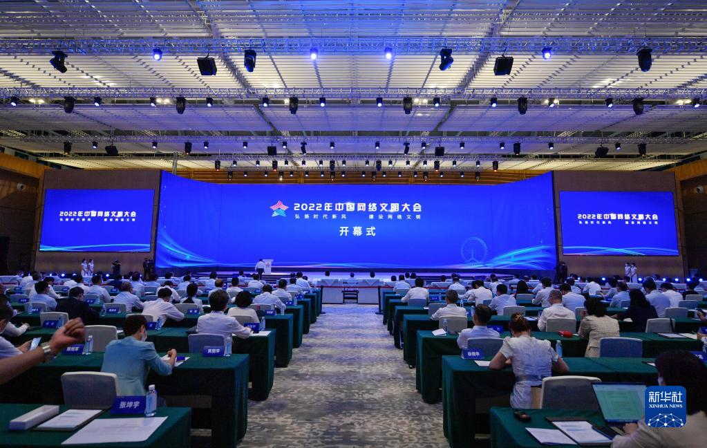 8月28日在國家會展中心(天津)拍攝的2022年中國網絡文明大會開幕式現場。