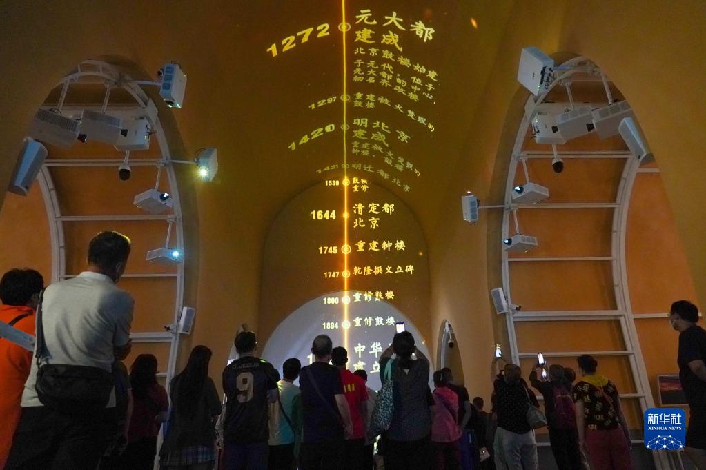 北京鼓樓正在試運營的展覽“時間的故事”通過沉浸式數字展、交互體驗等方式闡釋北京鐘鼓樓的古代報時功能、建筑特點、周邊地區民俗文化及其與北京中軸線的關系等內容。