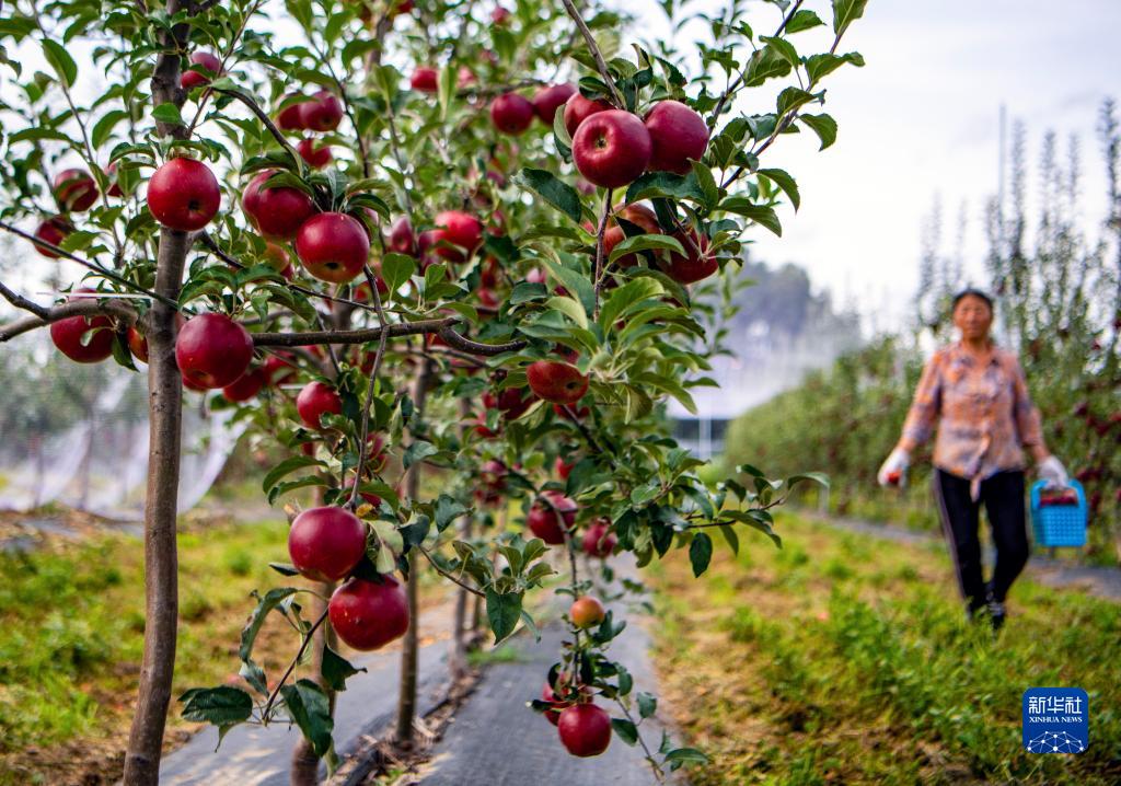 8月28日,農戶在大理市喜洲鎮大本農業蘋果產業研發基地采摘蘋果。