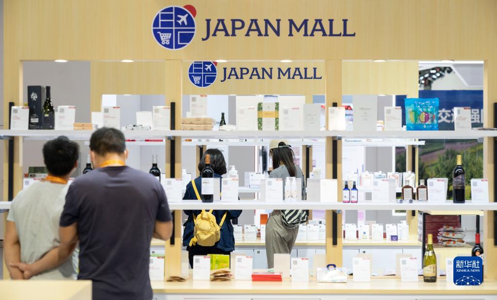 8月28日,在國家會議中心舉行的服貿會媒體探營活動中,人們在日本展臺觀看展品。