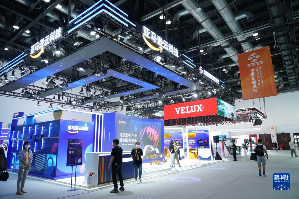 8月28日在國家會議中心一期拍攝的2022年服貿會年度主題展區。