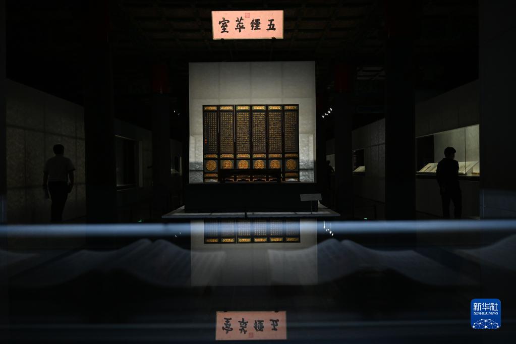 這是清乾隆帝楷書五經萃室匾及炕桌、炕屏(8月29日攝)。