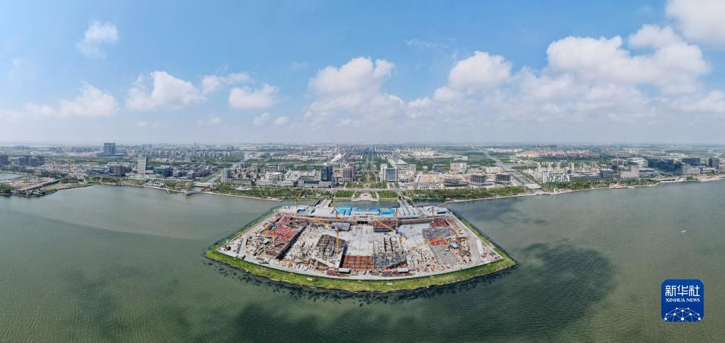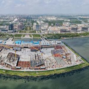 8月29日,空中俯瞰臨港西島金融中心項目工地(無人機照片)。