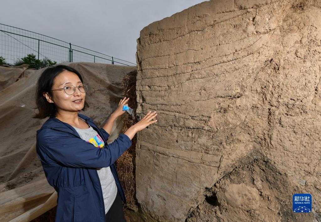 蘭州大學資源環境學院的教師在南佐遺址核心區大型宮殿建筑發掘現場進行植物考古研究(8月23日攝)。