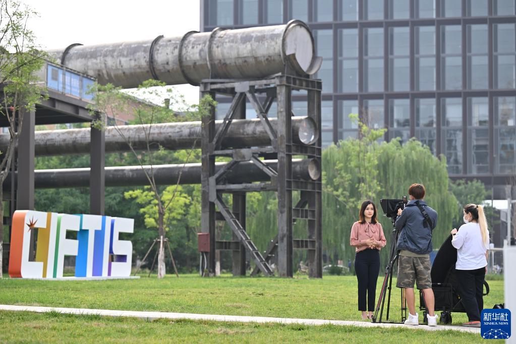 8月29日,在服貿會首鋼園區,記者在媒體探營活動中進行拍攝報道。