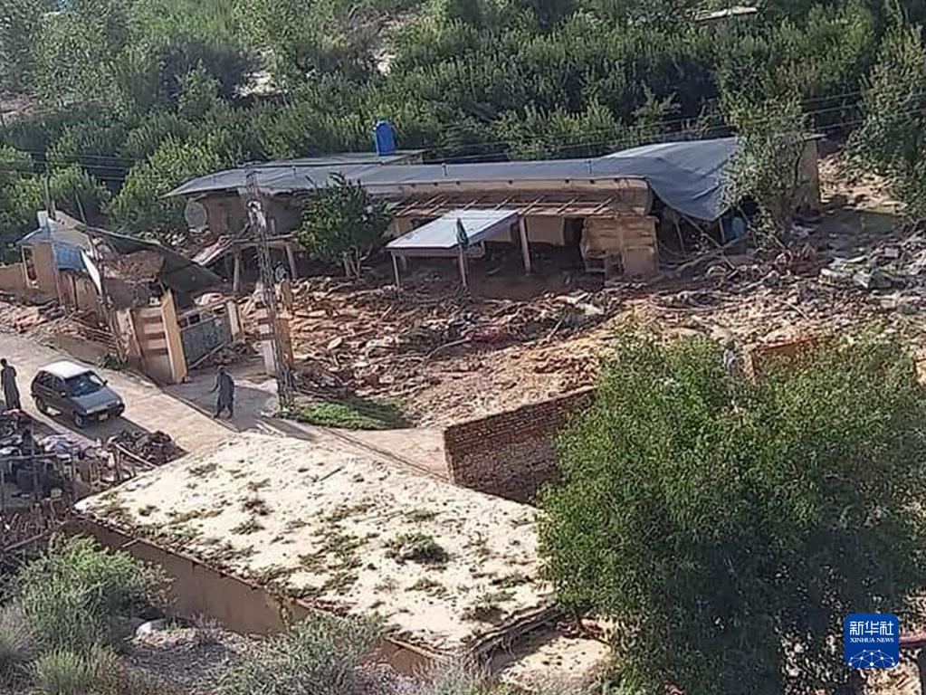 8月28日,在巴基斯坦俾路支省賈法拉巴德地區,山洪過后的院落一片狼藉。