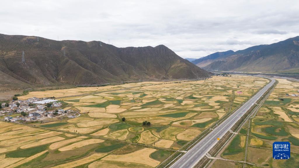 西藏拉薩市墨竹工卡縣扎西崗鄉的青稞田(8月29日攝)。