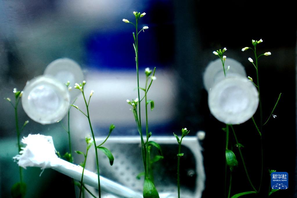 這是“太空同款”擬南芥培養單元中擬南芥開的花(8月29日攝)。新華社記者 張建松 攝