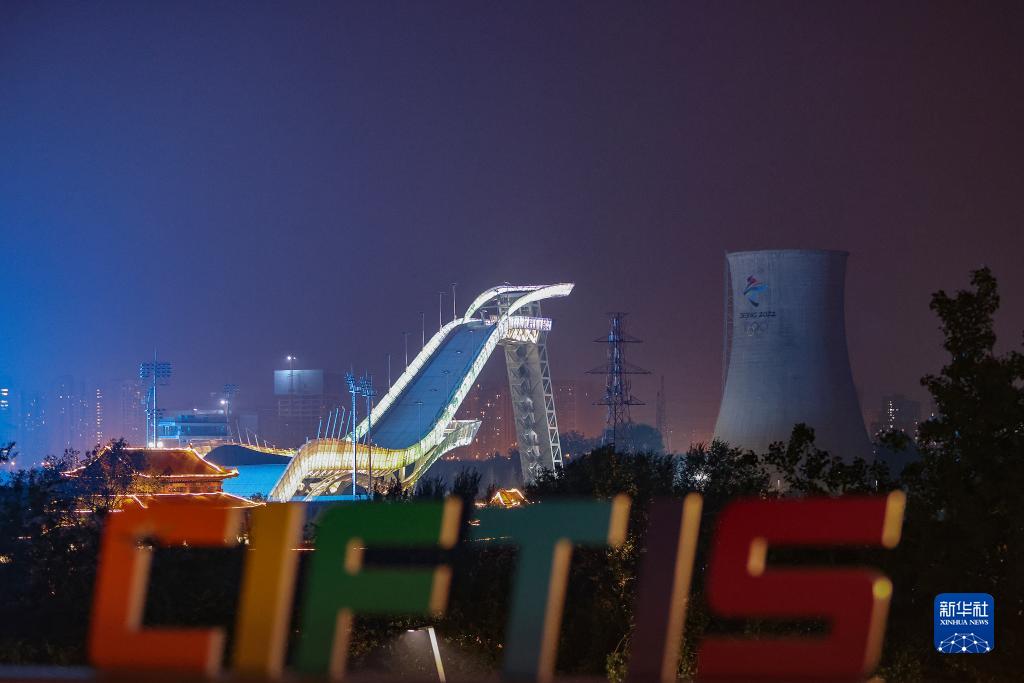 這是8月29日在服貿會媒體探營活動中拍攝的首鋼園區夜景。