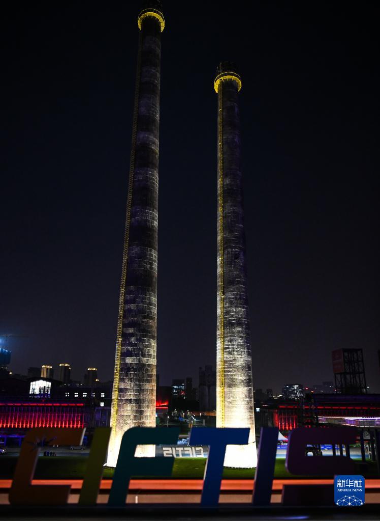 這是8月29日在服貿會媒體探營活動中拍攝的首鋼園區夜景。