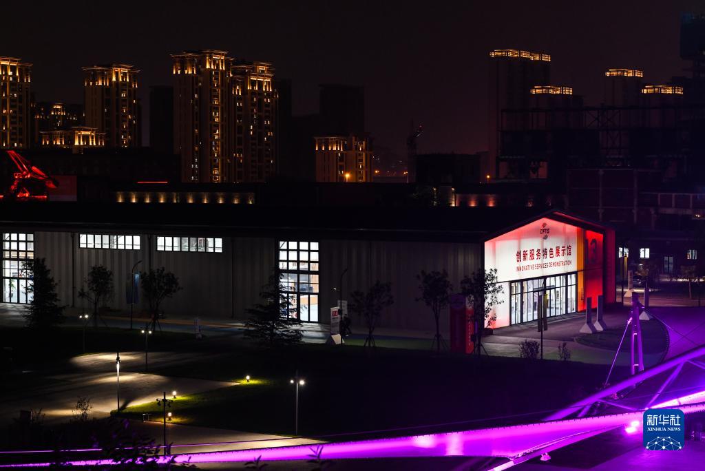 這是8月29日在服貿會媒體探營活動中拍攝的首鋼園區夜景。
