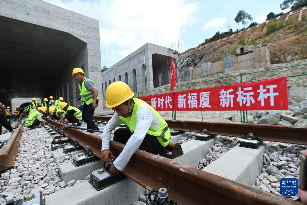 當日,在新建福州—廈門鐵路廈門北站施工現場,隨著最后一組500米長鋼軌順利鋪設,我國首條跨海高鐵——新建福(州)廈(門)鐵路鋪軌施工全線貫通。