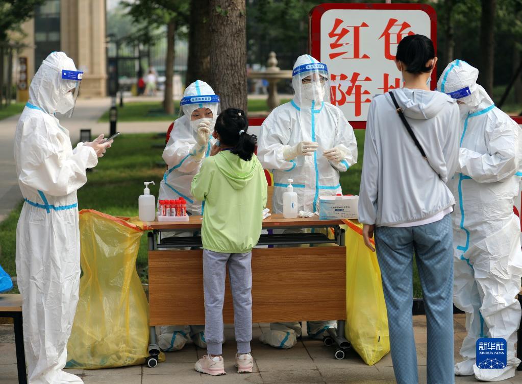 8月30日,在石家莊市眾美綠都小區核酸采樣點,市民接受核酸采樣。