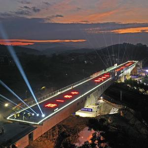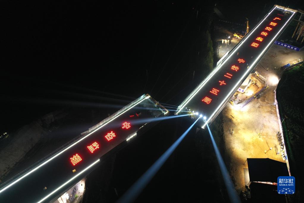 當日,廣西南(寧)玉(林)鐵路全線最大噸位雙幅轉體橋——福慶特大橋跨湘桂鐵路轉體橋在順時針旋轉后成功對接,兩幅對接后的轉體橋成為上跨湘桂鐵路的空中走廊,標志著南玉鐵路建設取得重大突破。福慶特大橋全長945米,轉體部分的橋梁梁體總長220米,總重量超過1.2萬噸。