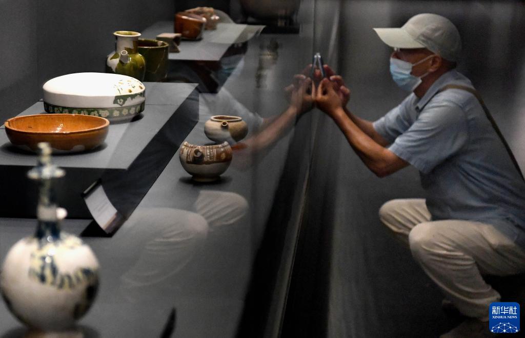 8月30日,參觀者在鄭州大象陶瓷博物館內拍攝展品。