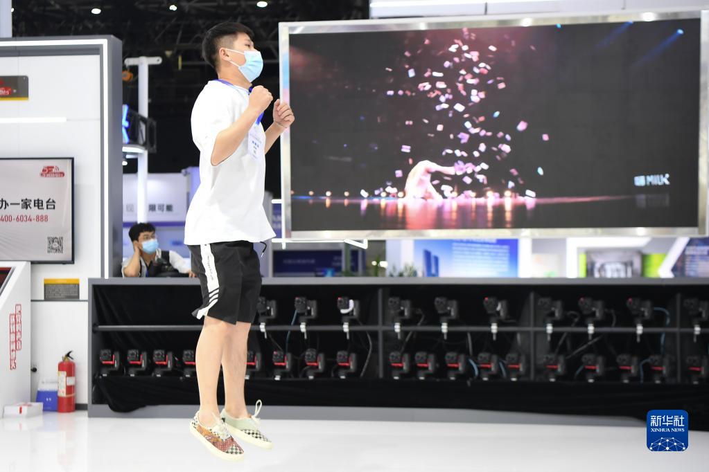8月30日,工作人員在“新技術 融創新高地”2022中國新媒體技術展上展示廣播級超高清時空凝結自由視角互動系統。
