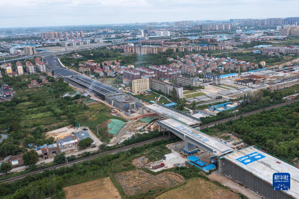 8月30日,湖北孝感跨京廣鐵路的橋梁成功轉體(無人機照片)。