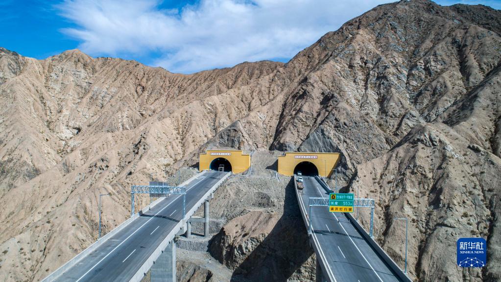 依若高速公路巴什庫爾干一號隧道(6月11日攝,無人機照片)。