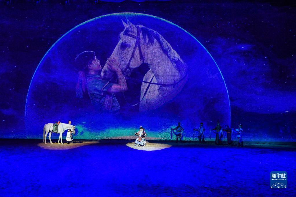 當日,由內蒙古藝術劇院出品的大型馬舞劇《千古馬頌》在呼和浩特上演。該劇以民族馬術、馬背雜技、舞馬表演、蒙古族歌舞樂等藝術元素為主要表現形式,融合了現代高科技舞臺技術,體現了人與馬、自然和諧共存的精神。