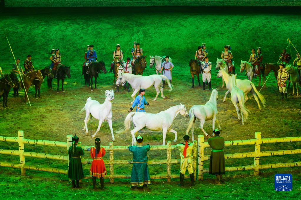 當日,由內蒙古藝術劇院出品的大型馬舞劇《千古馬頌》在呼和浩特上演。該劇以民族馬術、馬背雜技、舞馬表演、蒙古族歌舞樂等藝術元素為主要表現形式,融合了現代高科技舞臺技術,體現了人與馬、自然和諧共存的精神。