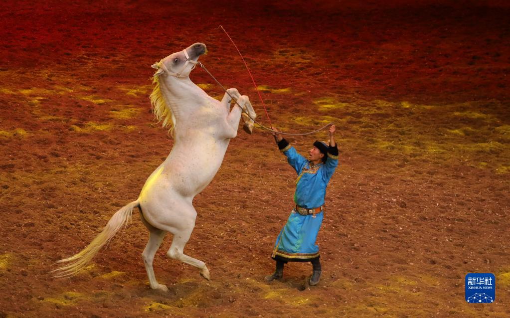 當日,由內蒙古藝術劇院出品的大型馬舞劇《千古馬頌》在呼和浩特上演。該劇以民族馬術、馬背雜技、舞馬表演、蒙古族歌舞樂等藝術元素為主要表現形式,融合了現代高科技舞臺技術,體現了人與馬、自然和諧共存的精神。