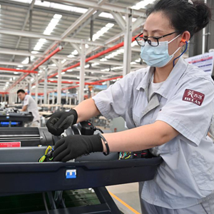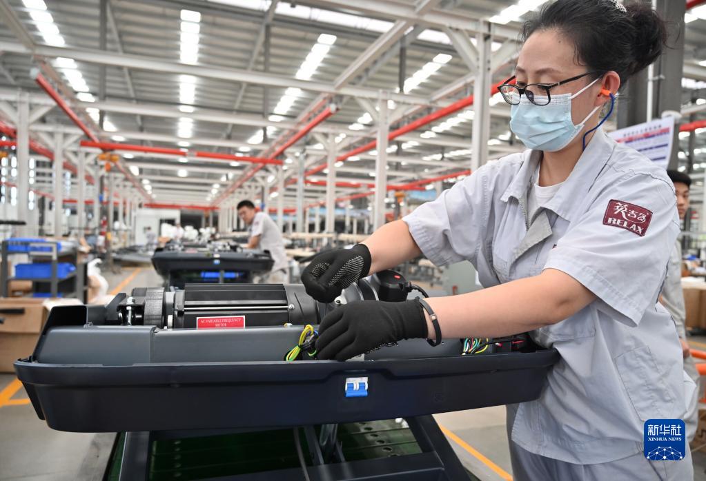8月30日,在日照經濟技術開發區一家企業組裝車間,工人組裝出口歐美國家的智能跑步機。