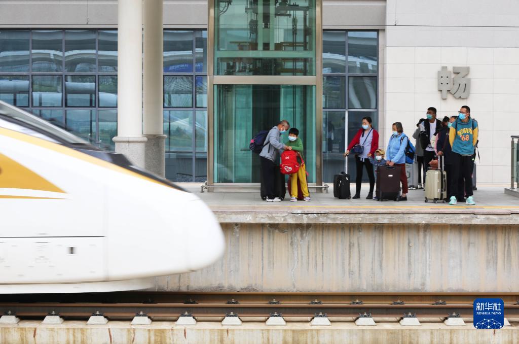 8月31日,旅客在寶蘭高鐵定西北站站臺上準備乘車出行。