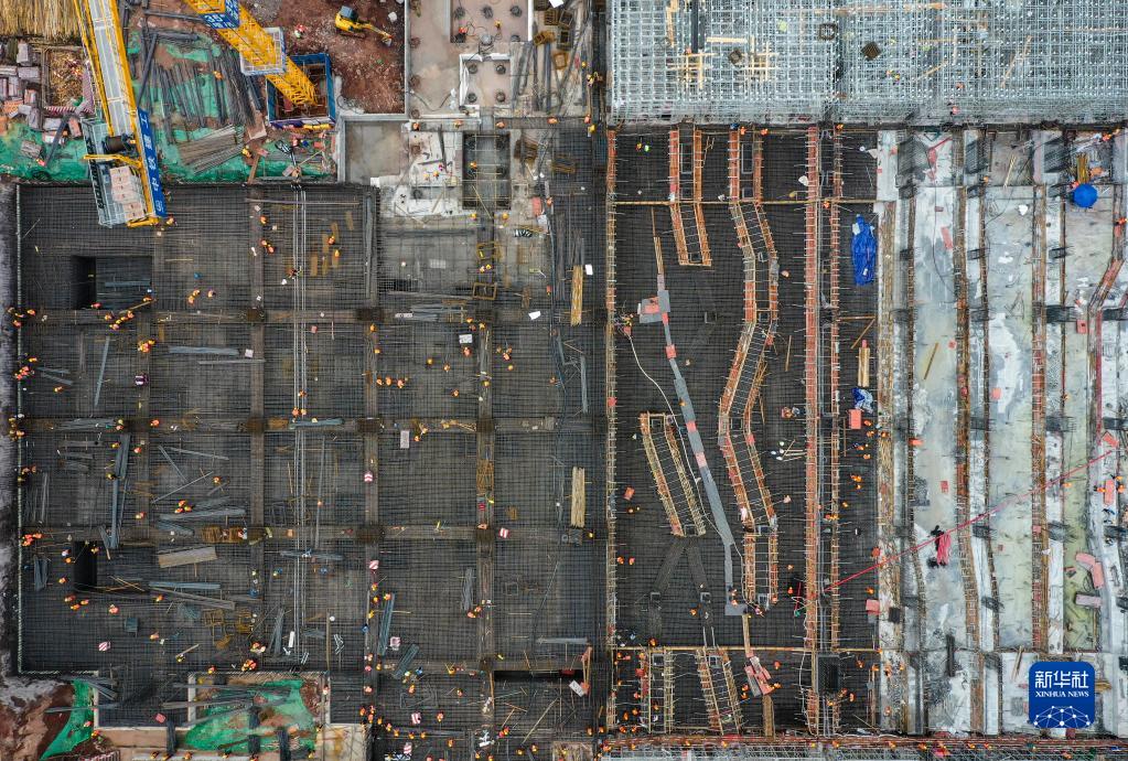 這是8月31日拍攝的重慶東站樞紐新城項目施工作業現場(無人機照片)。