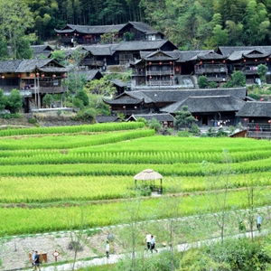 初秋時節,在湖北省宣恩縣彭家寨風景區,古色古香的吊腳樓與起伏的田壟勾勒出一幅迷人的畫卷。農民忙著“曬秋”,游客或乘坐小火車或步行游覽,樂享秋日美景。彭家寨古吊腳樓群是鄂西山區保存較完好的民居群落,歷史悠久的深山古寨經修繕保護,旅游服務等配套設施進一步提升,為當地鄉村振興注入了活力。