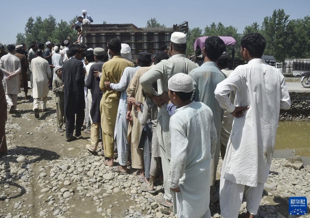 8月31日,在巴基斯坦西北部開伯爾-普什圖省的賈爾瑟達地區,人們排隊領取救災物資。