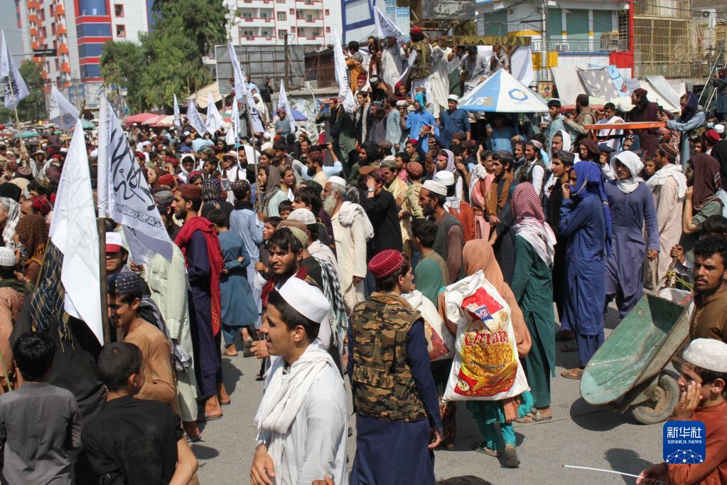 8月31日,時值美軍撤離阿富汗一周年之際,人們走上阿富汗楠格哈爾省首府賈拉拉巴德街頭。