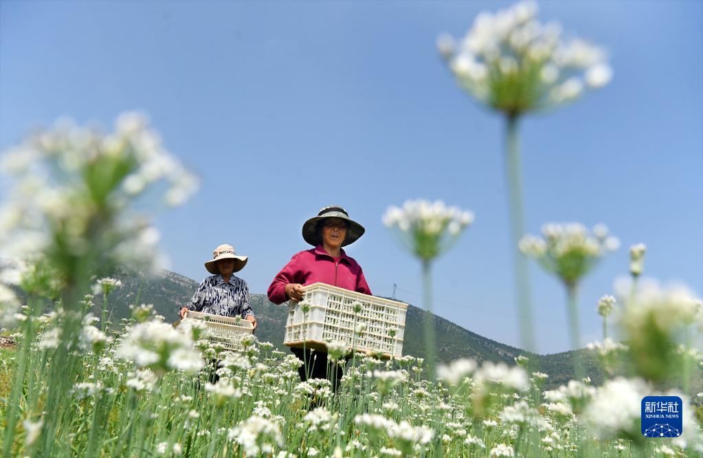 初秋時節,山東省沂源縣農民種植的近萬畝韭菜迎來開花期。當地農民加緊采摘,田間地頭一派忙碌。該地的韭菜花作為制作韭花醬、韭花醬菜的原料遠銷各地,是當地農民秋季增收的特色產業之一。