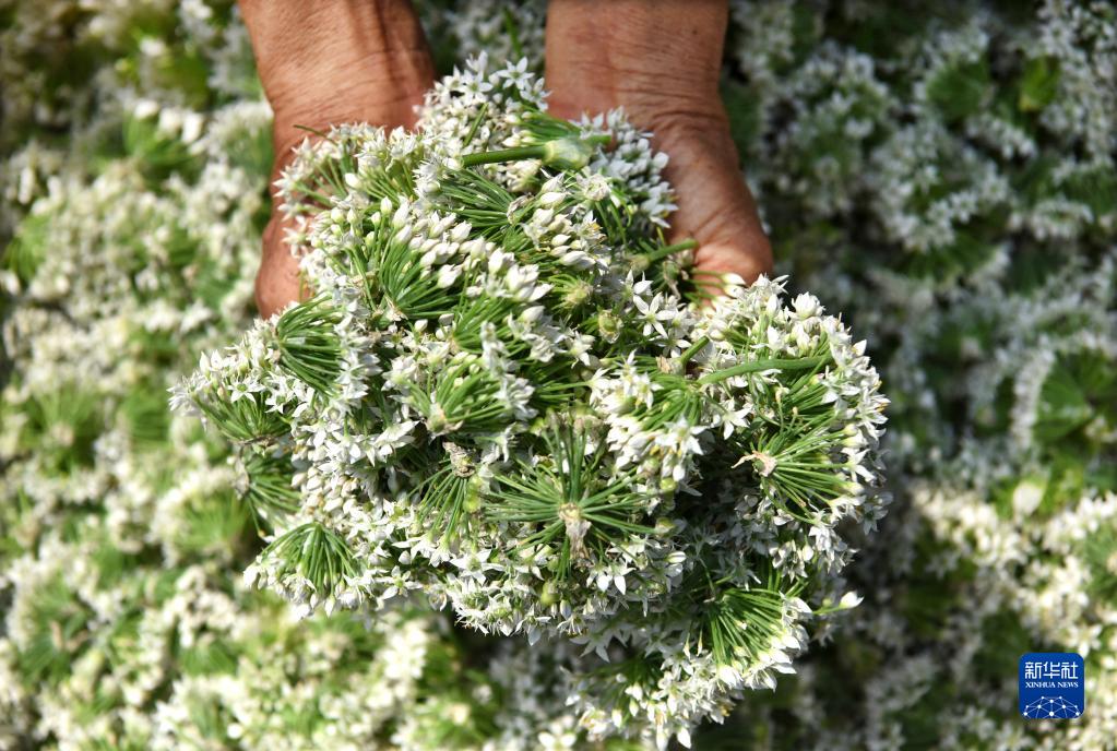 初秋時節,山東省沂源縣農民種植的近萬畝韭菜迎來開花期。當地農民加緊采摘,田間地頭一派忙碌。該地的韭菜花作為制作韭花醬、韭花醬菜的原料遠銷各地,是當地農民秋季增收的特色產業之一。
