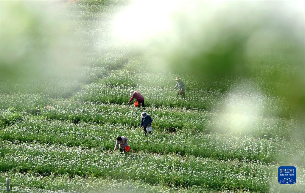 初秋時節,山東省沂源縣農民種植的近萬畝韭菜迎來開花期。當地農民加緊采摘,田間地頭一派忙碌。該地的韭菜花作為制作韭花醬、韭花醬菜的原料遠銷各地,是當地農民秋季增收的特色產業之一。