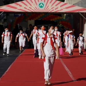 9月1日,在位于北京市海淀區的人大附中實驗小學,老師為學生上開學第一課。