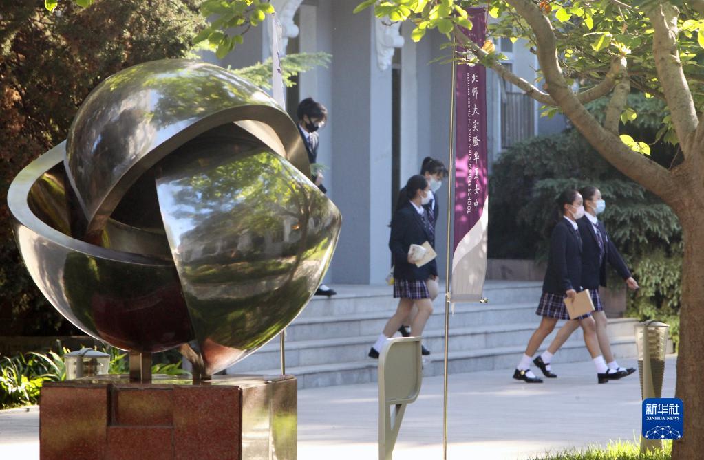 9月1日,北京師范大學實驗華夏女子中學的學生準備參加開學典禮。