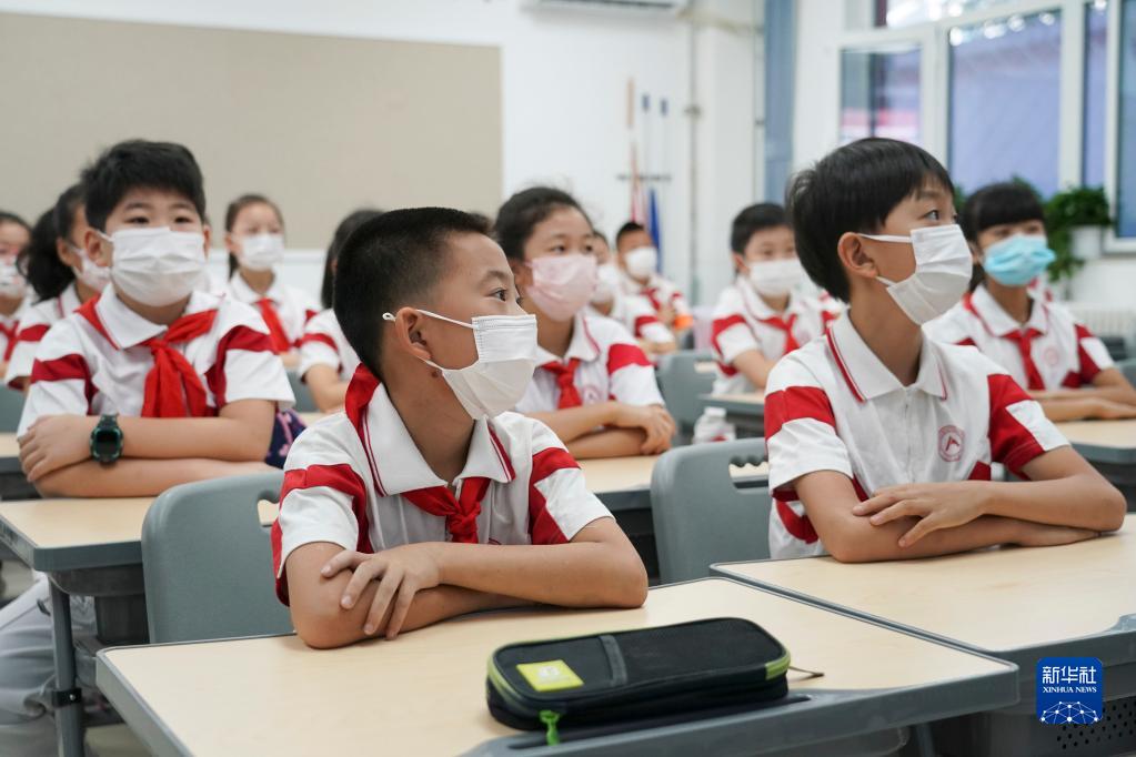 9月1日,在位于北京市海淀區的人大附中實驗小學,五年級學生上開學第一課。