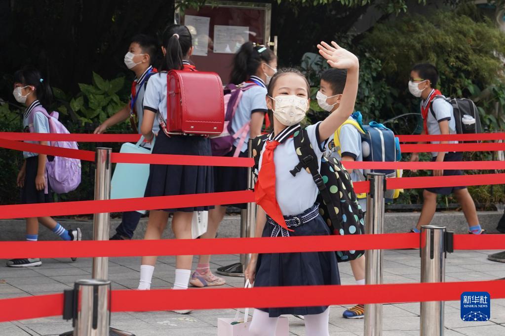 9月1日,上海市第一師范學校附屬小學學生在入校時和家長告別。