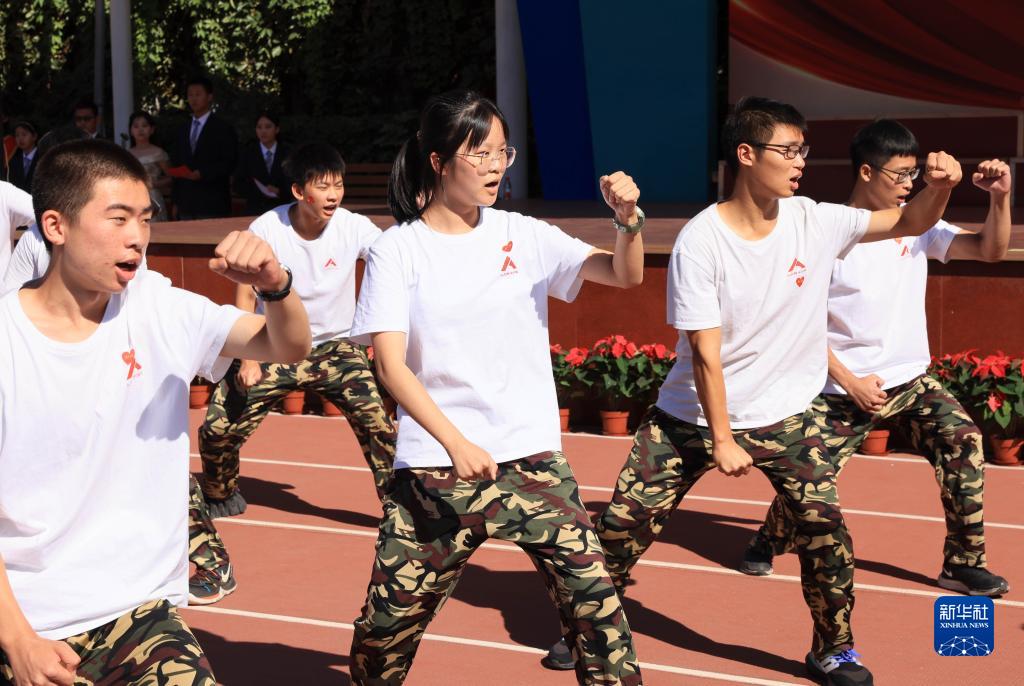 9月1日,中國人民大學附屬中學分校的學生在開學典禮上表演軍體拳。