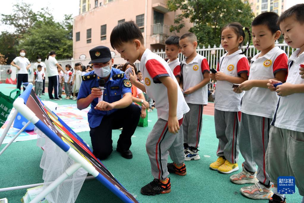 9月1日,安徽省合肥市包河區常青街道淝南社區淝南家園幼兒園小朋友在開學第一課上參與垃圾分類環保小游戲。