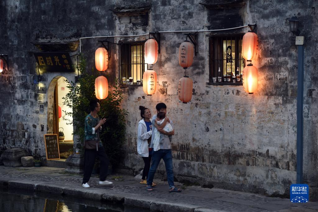 8月31日傍晚,游客在宏村游覽。近年來,位于安徽省黃山市黟縣的宏村緊抓鄉村發展機遇,將夜經濟與文旅產業深度融合,激活消費增長點,入選了第二批國家級夜間文化和旅游消費集聚區名單。新華社記者 周牧 攝